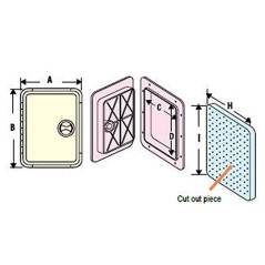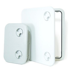 Sportelli rettangolari in ABS di colore bianco, costruiti per durare nel tempo. Ideali per accedere ai vari scompartimenti di bordo, agevolare il montaggio di accessori e per l'ispezione delle condotte di carburante, cavi telecomando, elettrici, ecc. La superficie esterna è antiscivolo e possono essere montati in parete o in piano. Costruiti con profili copriviti non visibili dall'esterno, guarnizione interna che li rendono stagni e possono essere forati per il montaggio della serratura.